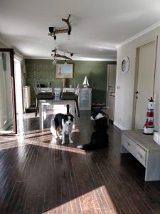 In ons vakantiehuisje is veel aanwezig om u helemaal thuis te laten voelen: Airco op elke slaapkamer, 1 hondenbench, 3 hondenmatjes, 1 grote hondenmand, 1 iets kleinere hondenmand, 3 drinkbakken, TV 39″ (telenet), WIFI (de code vindt u in de infomap in het huisje), microgolfoven, internet/fm/dab radio, extra brede oven , extra breed gasvuur, potten en pannen, bestek, borden, glazen, allerlei keukengerei, warmwaterkruik, kaarsjes, denkspelletje voor de hond, gezelschapsspelletjes voor de baas, fitnessbal, strandkarretje, 1 veiligheidsvestje, 2 croques monsieurtoestellen, 1 mixer, 1 broodrooster, 1 warmwaterkoker, 1 koffiezet ( filters ), Gourmet set, pizzastenen voor in de oven, verschillende soorten thee, koffie, vaatwasser, frigo ( 326 L ), diepvries ( 101 L ), afwasblokjes, 1 haardroger, kussens en dekbedden, brandblusser, branddeken, wasrek, wasmachine, tuinslang, BBQ ( houtskool ), BBQ-starter, asemmer, 2 ligzetels, parasol, badmintonset, DVD-speler en een 300tal DVD’s, blauwe schelp ter afkoeling voor de honden (bij vertrek terug netjes achterlaten)