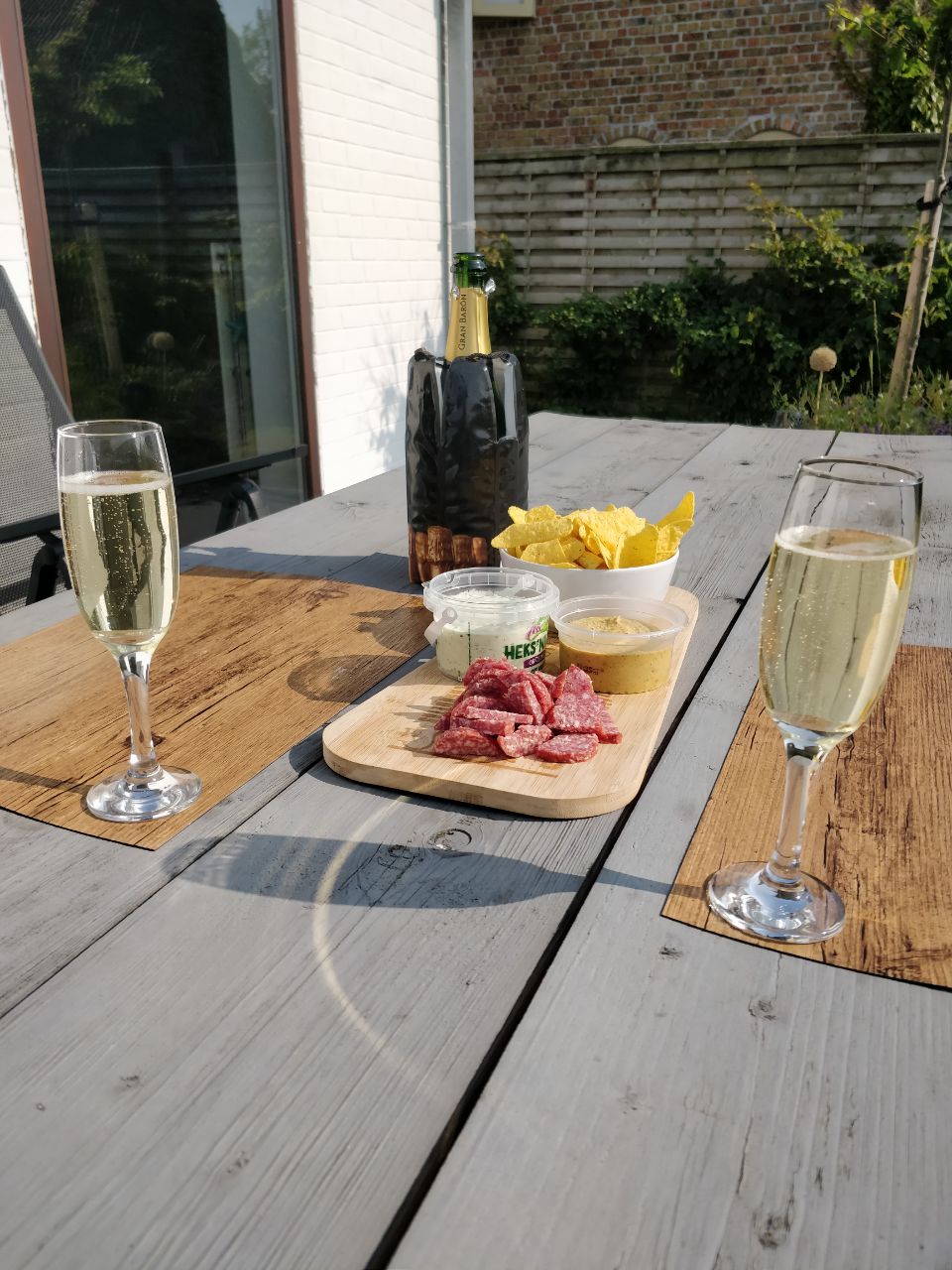 We hadden een restaurantje gepland, maar dat hebben we vervangen door gezelligheid ‘thuis’ en een heerlijke zeevruchtenschotel van de viswinkel. Kortom, het was genieten!”